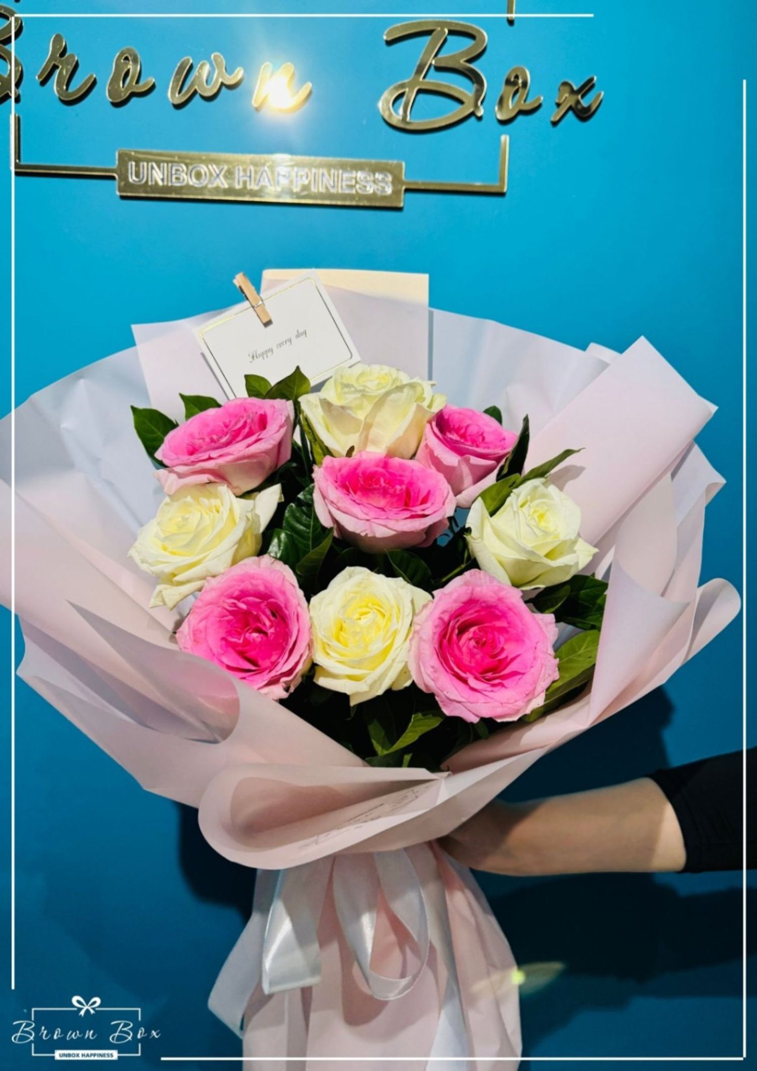 9ш ягаан, цагаан сарнайны холимог баглаа. Гоёлын урт баглаа /1 метр/